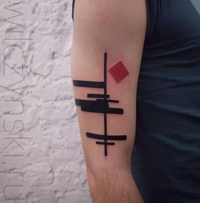 对于简单的几何线条纹身来说,图案可以不单单是直来直去的线条,你还可以加入圆点以及多边形,当然还有其他众多元素,来构成一个完整而有意境的图形。